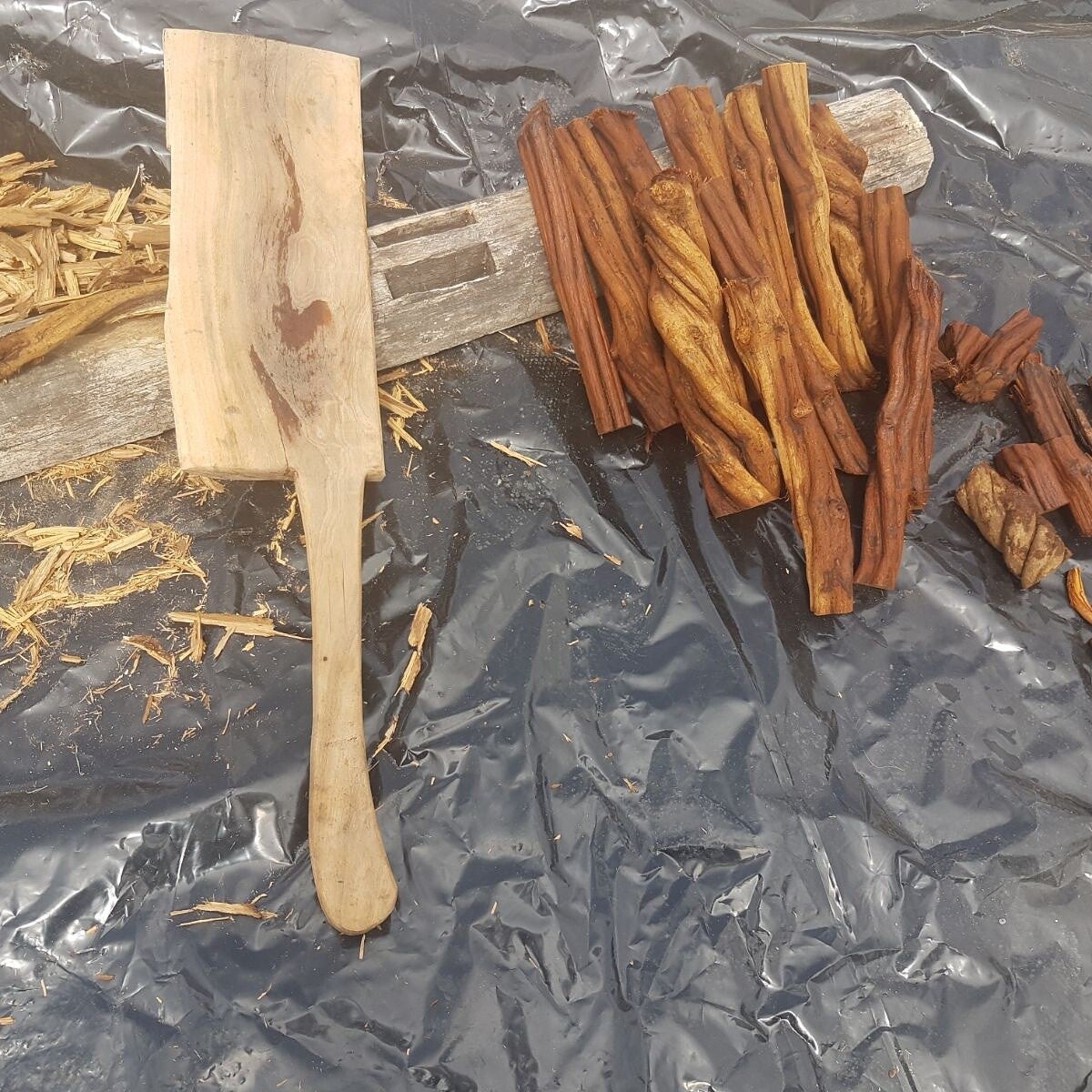 This Ethnobotanical Tea, also known as ‘Ayahuasca’ in the Andean region, originates from the rainforest. In traditional Shuar ceremonies, we also use Tobacco and Rape. Our Tobacco is distinct from commercial products; it's used in Tobacco-water, administered through the nose, to prepare the body for the Ethnobotanical Tea. Sometimes, Tobacco Mapacho is smoked and used in prayer.